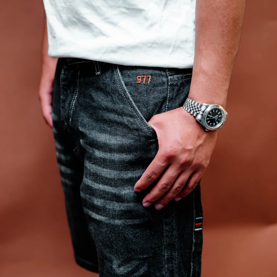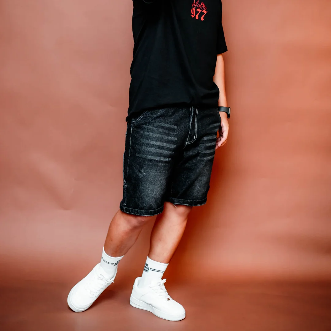 977 is delivering the hottest looks of the season with their latest epic drop at KtownIcon. These shorts feature our signature embroidered 977 on the left side pocket, a premium leather patch at the back, and the iconic tri-color stripes of red, blue, and white as a tribute to the Nepal flag to make you the envy of all your friends, on a washed denim for a lived-in look. Get your hands on a pair today at KtownIcon.
