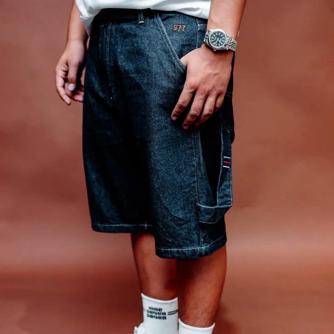 977 is delivering the hottest looks of the season with their latest epic drop at KtownIcon. These shorts feature our signature embroidered 977 on the left side pocket, a premium leather patch at the back, and the iconic tri-color stripes of red, blue, and white as a tribute to the Nepal flag to make you the envy of all your friends, on a washed denim for a lived-in look. Get your hands on a pair today at KtownIcon.