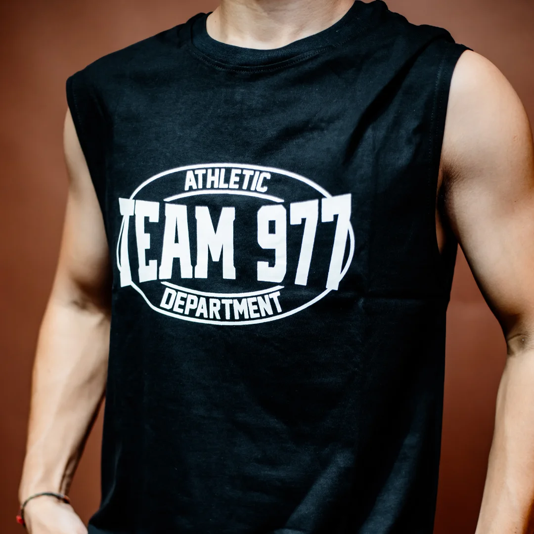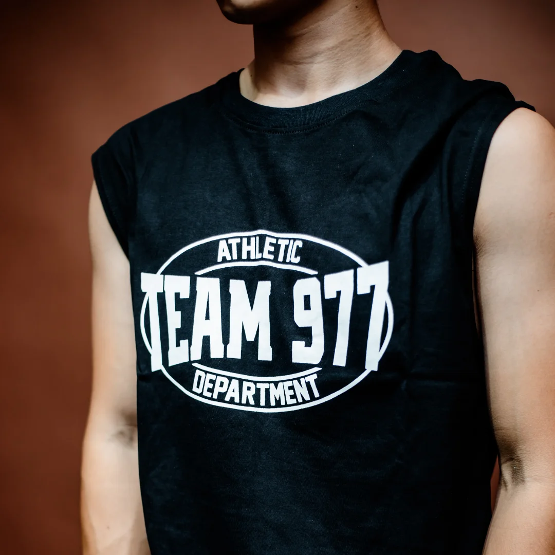 Set your heart ablaze with this muscle tee. Featuring fire printed Team 977 vs THE WORLD premium cotton construction with raw sleeves to finish it off. This is the must-have piece of the season, get your hands on it today.